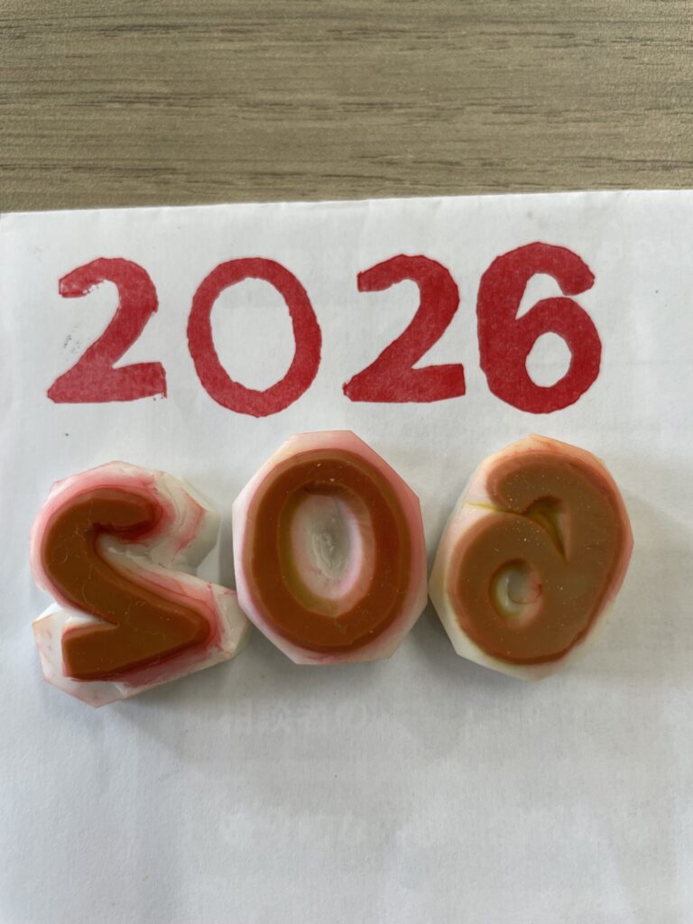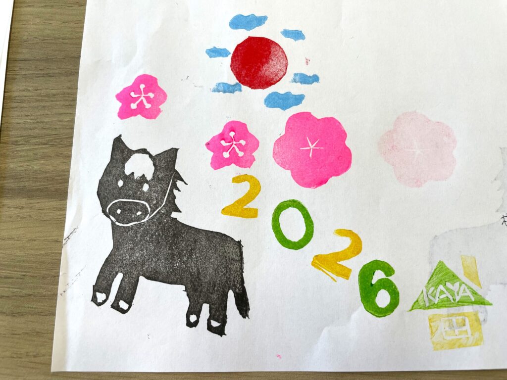 馬の消しゴムはんこを使用した2026年度のカレンダーを製作中です!
