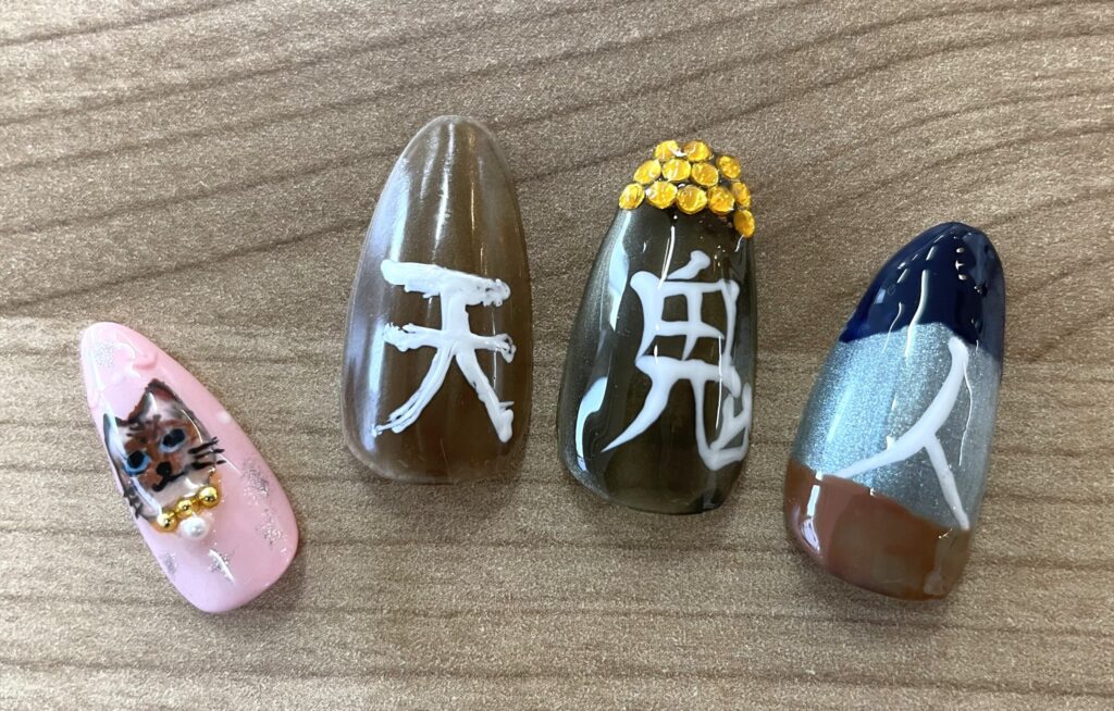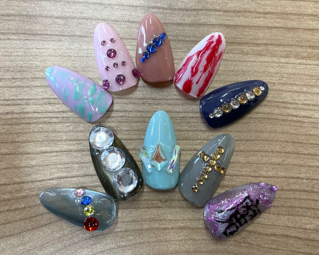 よくここまでデザインが思いついてきれいに形にできるなあと驚いているわけですが、やっぱり斬新なデザインが多いからかこれらのサンプルチップを置いているネイルサロンで利用者さんたちのデザインでのネイル依頼が出ているそうです!(*´з`)