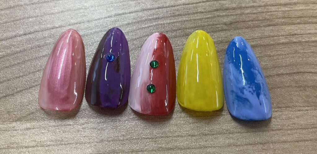 最初はチップの裏側にジェルがはみ出したり、色にムラができてたりでしたが